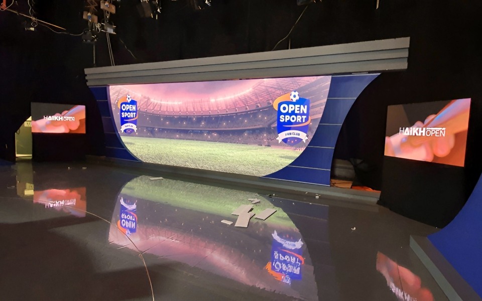 In 2018, DIMERA Group invested in a new Broadcast Facility in Paiania to support the rebranded OPEN TV channel. The complex included three buildings with multiple studios, control rooms, news, and production areas. Telmaco delivered turnkey broadcast integration covering studios, control rooms, newsroom automation, ingest, playout, continuity, digital archiving, intercom, and a large-scale video wall.