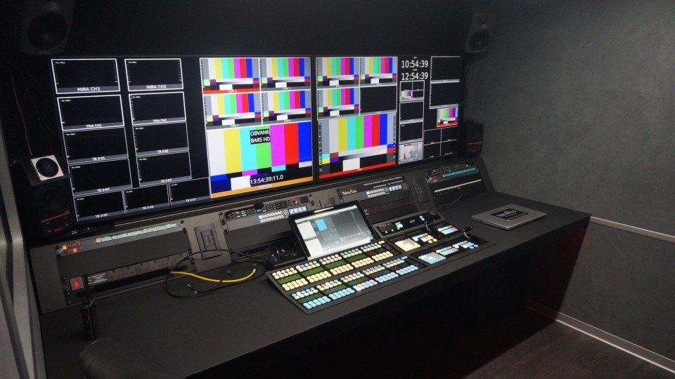 The new 8-Camera OB Van for CyBC was fully designed and custom-built from the ground up as a self-contained broadcast facility capable of handling multi-camera productions in any location. The system architecture integrates HD camera chains, video switching, audio mixing, intercom, monitoring, and recording/playout servers into a compact and ergonomic mobile environment. The van features separate production and sound control rooms, engineered for optimized workflow and acoustic performance. Built on a 15-ton chassis, it includes redundant power, air conditioning, and hydraulic leveling systems to ensure safe and stable operation under all conditions. A dedicated Technical Support Vehicle with a 44 KVA generator provides independent power supply and equipment transport.
