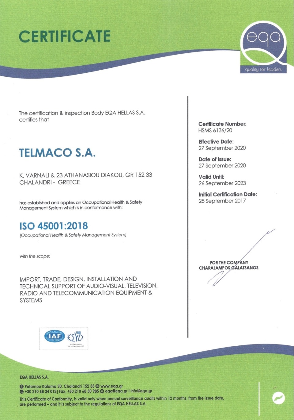 Telmaco operates in strict adherence to national and EU regulations, ensuring full compliance with the latest industry requirements.